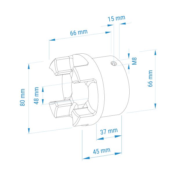 Kupplungsnabe Typ 1  (Standardnabe) | Durchmesser 80 mm | Nabenlänge 45 mm | Grauguss | Fertigbohrung mit Nut und Gewinde auf der Nut