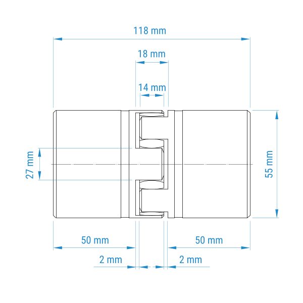 Komplette Kupplung | Durchmesser 55 mm | Gesamtlänge 118 mm | Stahl | Zahnkranz: 98 Shore A | ungebohrt/vorgebohrt