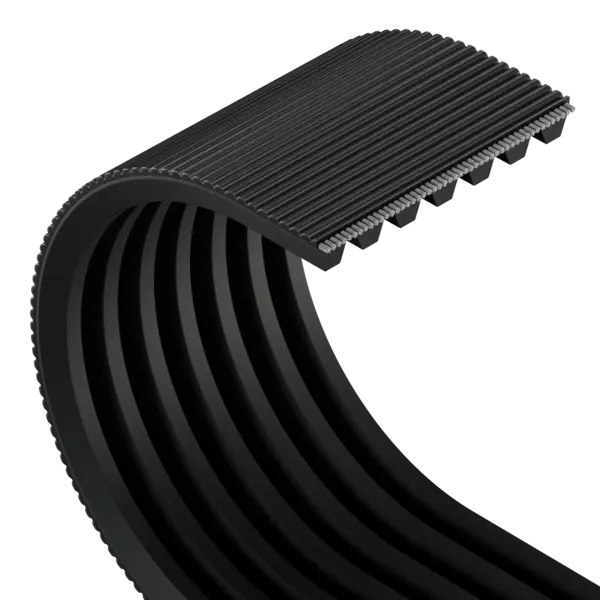 Ein Verbundkeilriemen besteht aus mehreren Keilriemen. Der Riemenverbund hat eine hohe Laufruhe – er absorbiert Schwingungen, die durch Stoßbelastungen oder hohe Achsenabstände entstehen.