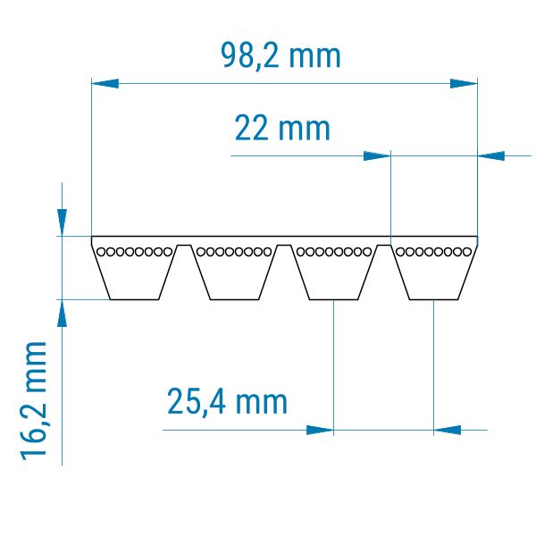 Die einzelnen Riemen im 22 (C)-Profil bestehen aus längengleichen Klassischen Keilriemen oder Schmalkeilriemen.