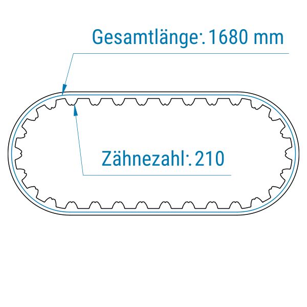 Standard-Antriebsriemen werden als geschlossene, breite Zahnwickel angeboten. Das bedeutet, dass der Zugstrang im Zahnriemen spiralförmig gewickelt und somit nicht unterbrochen ist. Dadurch kann der Riemen große Zugkräfte aufnehmen. Jeder Riemen wird auf die von Ihnen gewünschte Breite zugeschnitten. Die Fertigung erfolgt in Breiten von 200–800 mm. Bei der Länge stehen Ihnen vorgegebene Maße zur Auswahl.