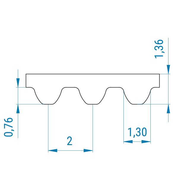 Das Profil eines Zahnriemens gibt Form, Größe und Abstand der Zähne an.