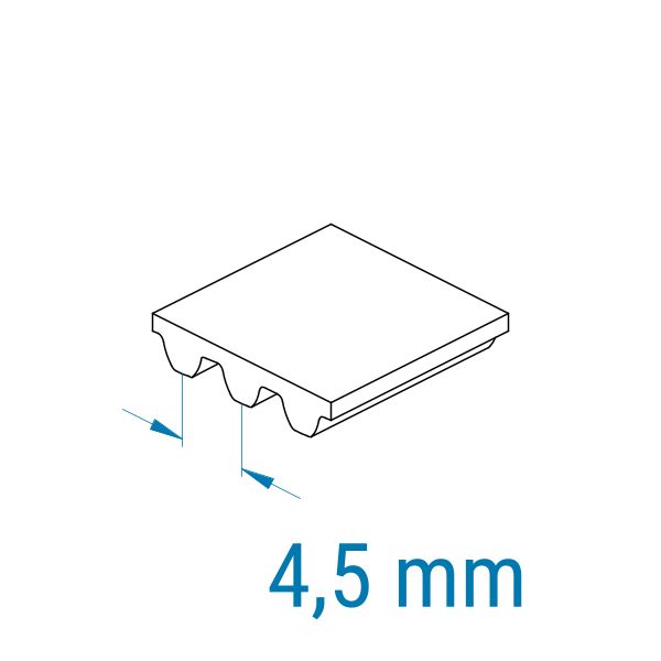 Das S4,5M-Profil verfügt über eine abgerundete Zahnform mit abgeflachter Zahnspitze. Zahn und Zahnlücke sind bei diesen Riemen nahezu gleich groß. Es ist zu beachten, dass STD-Riemen und -Scheiben nicht mit HTD-Riemen und -Scheiben betrieben werden können. Ein zähes und sehr verschleißfestes Nylon-Gewebe bedeckt die Verzahnung und schützt die Zähne vor Abnutzung. Der Abstand von Zahnmitte zu Zahnmitte beträgt bei dem S4,5M-Profil 4,5 mm.