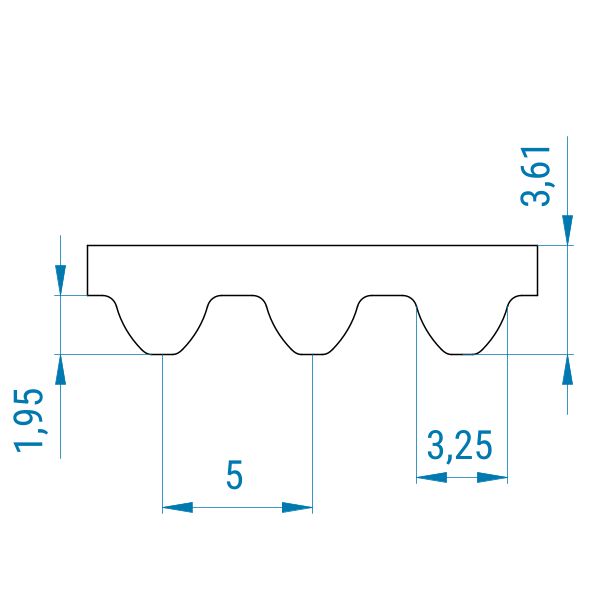 Das S5M-Profil verfügt über eine abgerundete Zahnform mit abgeflachter Zahnspitze. Zahn und Zahnlücke sind bei diesen Riemen nahezu gleich groß. Es ist zu beachten, dass STD-Riemen und -Scheiben nicht mit HTD-Riemen und -Scheiben betrieben werden können. Ein zähes und sehr verschleißfestes Nylon-Gewebe bedeckt die Verzahnung und schützt die Zähne vor Abnutzung. Der Abstand von Zahnmitte zu Zahnmitte beträgt bei dem S5M-Profil 5 mm.