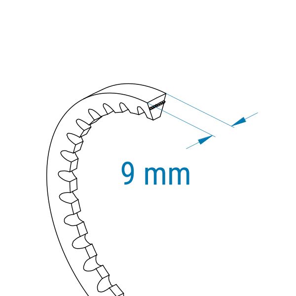 Die Optibelt-Keilriemen sind gezahnte Keilriemen im Profil 3VX mit einer oberen Breite von 9 mm.