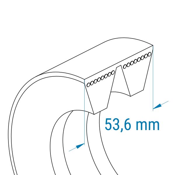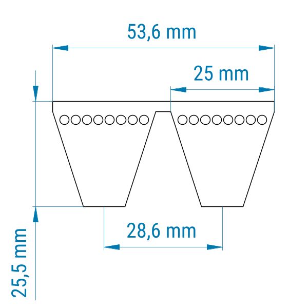Profil: 8V | 2 Rippen (Zuschnitt) | Gesamtbreite: ca. 54 mm | Höhe: 25,5 mm | Länge: 2540 mm (La)
