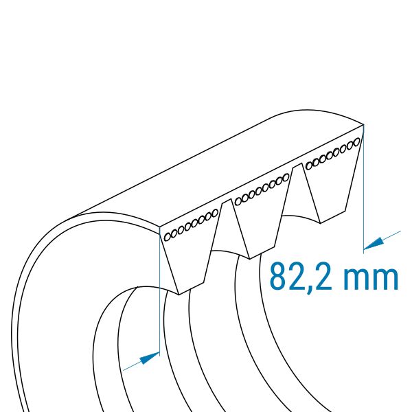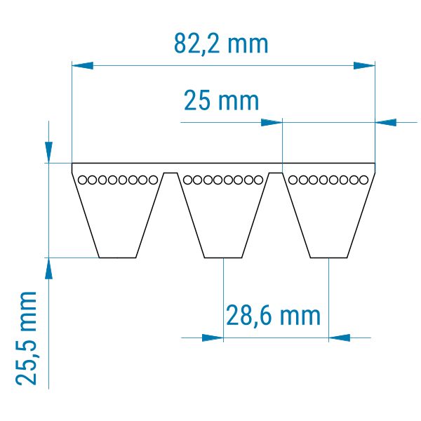 Profil: 8V | 3 Rippen (Zuschnitt) | Gesamtbreite: ca. 82 mm | Höhe: 25,5 mm | Länge: 2540 mm (La)
