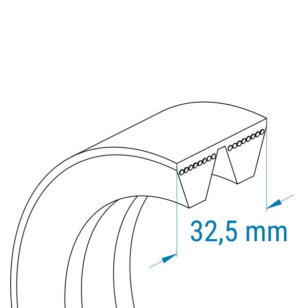Profil: 5V | 2 Rippen (Zuschnitt) | Gesamtbreite: ca. 33 mm | Höhe: 15,1 mm | Länge: 1900 mm (La)
