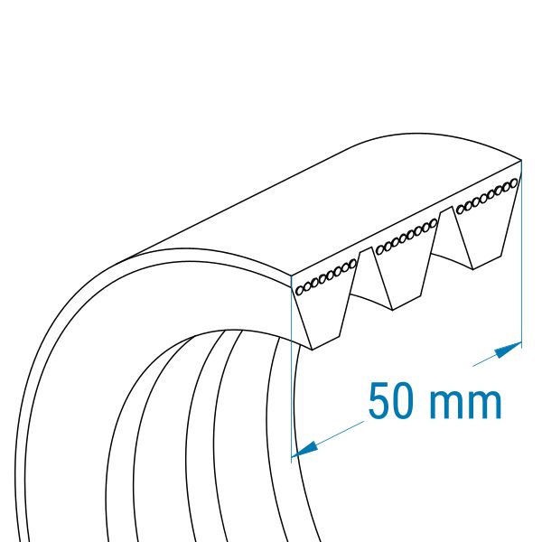 Profil: 5V | 3 Rippen (Zuschnitt) | Gesamtbreite: ca. 50 mm | Höhe: 15,1 mm | Länge: 2160 mm (La)
