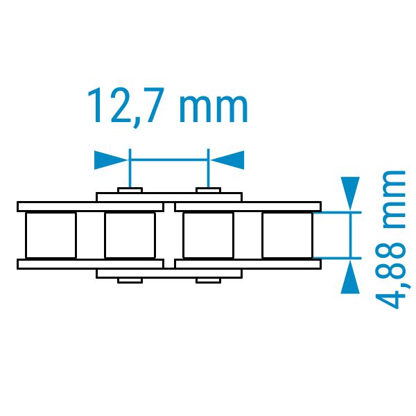 Insbesondere bei kleinen Durchmessern der Kettenräder und Kettenradscheiben sind Mehrfachketten empfehlenswert. Rollenketten in anderen Profilen gibt es auch als Zweifach- oder Dreifachketten.