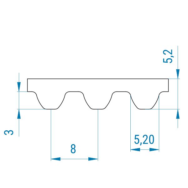 Profil: S8M CXA | 180 Zähne | Teilung: 8 mm | Länge: 1440 mm | Breite: 20 mm (Zuschnitt) | Neopren-Zahnriemen mit Kevlar-Zugträgern | geschlossen gefertigt