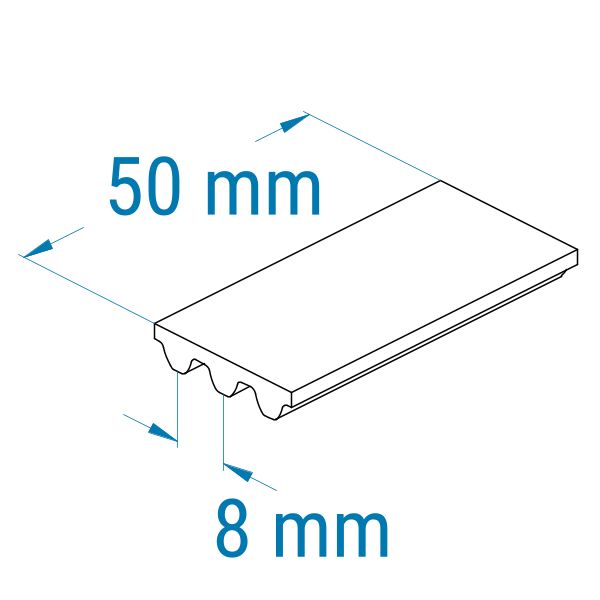 Profil: S8M CXP | 70 Zähne | Teilung: 8 mm | Länge: 560 mm | Breite: 50 mm (Zuschnitt) | Neopren-Zahnriemen mit Glasfaser-Zugträgern | geschlossen gefertigt