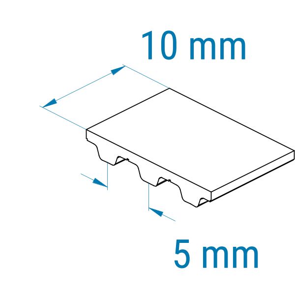 Profil: T5 | 145 Zähne | Teilung: 5 mm | Länge: 725 mm | Breite: 10 mm (Zuschnitt) | PU (Polyurethan)-Zahnriemen mit Stahl-Zugträgern | geschlossen gefertigt