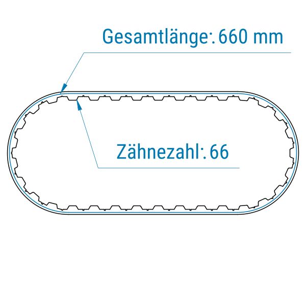 Profil: AT10 | 66 Zähne | Teilung: 10 mm | Länge: 660 mm | Breite: 25 mm (Zuschnitt) | PU (Polyurethan)-Zahnriemen mit Stahl-Zugträgern | geschlossen gefertigt