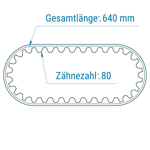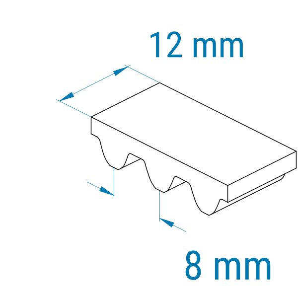 Profil: C8M | 80 Zähne | Teilung: 8 mm | Länge: 640 mm | Breite: 12 mm (Zuschnitt) | PU (Polyurethan)-Zahnriemen mit Carbon-Zugträgern | geschlossen gefertigt
