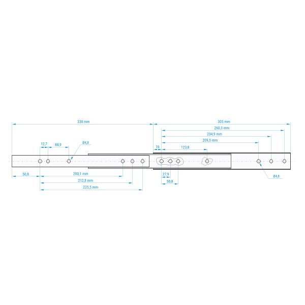 Schock Teleskopschienen Überauszug Serie 036, Länge 305 mm, Zuhaltung, Aushalterung (1 Paar)