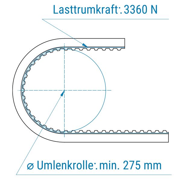 Zahnriemen 100-T5-offen-Stahl mit PVC Biggrip petrol