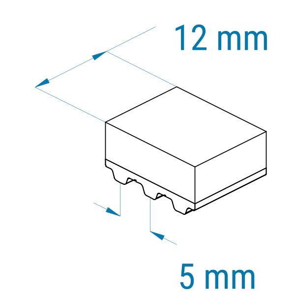 Profil: T5 | Breite: 12 mm | Mitnahme: hoch | Oberfläche: rau | Abriebfestigkeit: niedrig | für Führen, Zentrieren, Anpressen, Etiketten