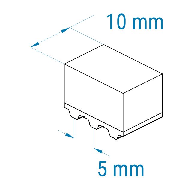 Profil: T5 | Breite: 10 mm | Mitnahme: hoch | Oberfläche: rau | Abriebfestigkeit: niedrig | für Führen, Zentrieren, Anpressen, Etiketten