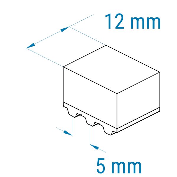 Profil: T5 | Breite: 12 mm | Mitnahme: hoch | Oberfläche: rau | Abriebfestigkeit: niedrig | für Führen, Zentrieren, Anpressen, Etiketten