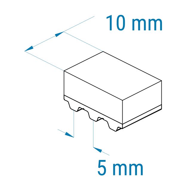 Profil: T5 | Breite: 10 mm | Mitnahme: hoch | Oberfläche: rau | Abriebfestigkeit: niedrig | für Führen, Zentrieren, Anpressen, Etiketten