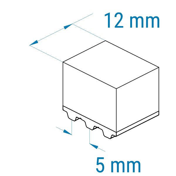 Profil: T5 | Breite: 12 mm | Mitnahme: hoch | Oberfläche: glatt | Abriebfestigkeit: mittel-hoch | für empfindliche Teile, Verpackungen, Kartonagen, Führen, Anpressen