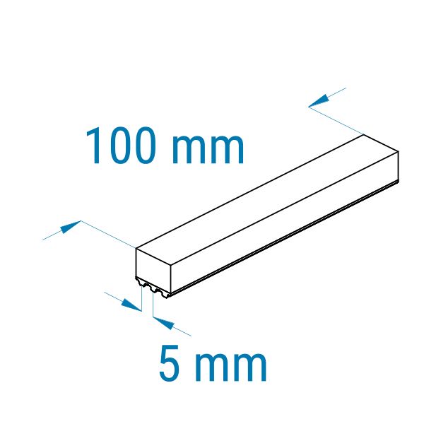 Profil: T5 | Breite: 100 mm | Mitnahme: hoch | Oberfläche: glatt | Abriebfestigkeit: mittel-hoch | für empfindliche Teile, Verpackungen, Kartonagen, Führen, Anpressen