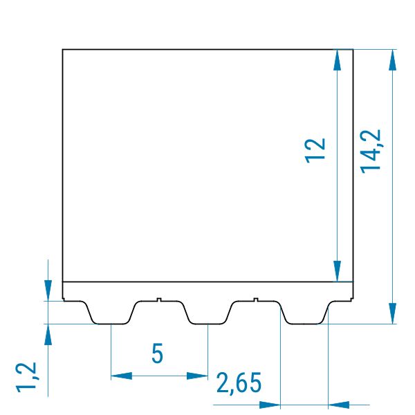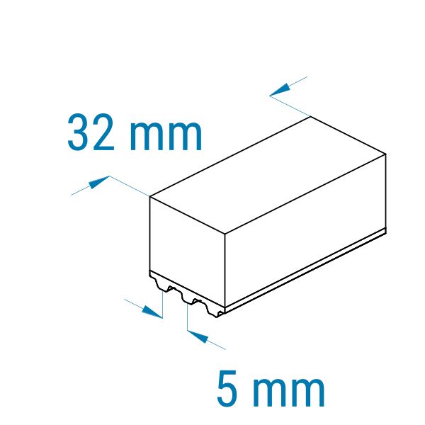 Profil: T5 | Breite: 32 mm | Mitnahme: hoch | Oberfläche: glatt | Abriebfestigkeit: mittel-hoch | für empfindliche Teile, Verpackungen, Kartonagen, Führen, Anpressen