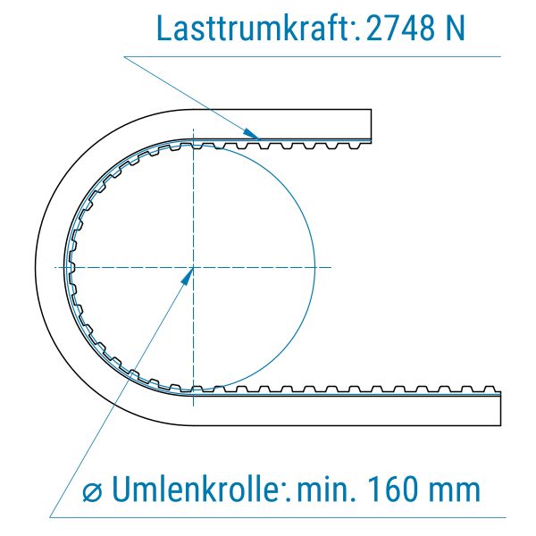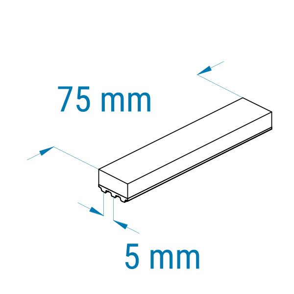 Profil: T5 | Breite: 75 mm | Mitnahme: hoch | Oberfläche: glatt | Abriebfestigkeit: mittel-hoch | für empfindliche Teile, Verpackungen, Kartonagen, Führen, Anpressen