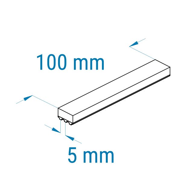 Profil: T5 | Breite: 100 mm | Mitnahme: hoch | Oberfläche: glatt | Abriebfestigkeit: mittel-hoch | für empfindliche Teile, Verpackungen, Kartonagen, Führen, Anpressen
