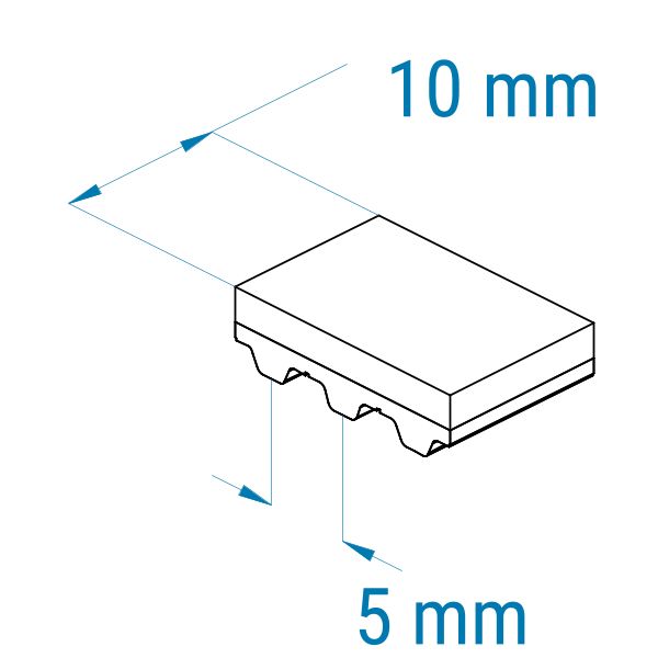 Profil: T5 | Breite: 10 mm | Mitnahme: hoch | Oberfläche: glatt | Abriebfestigkeit: mittel | für empfindliche Teile, Verpackungen, Kartonagen, Führen, Anpressen | für Lebensmittel geeignet nach FDA oder EU10/2011