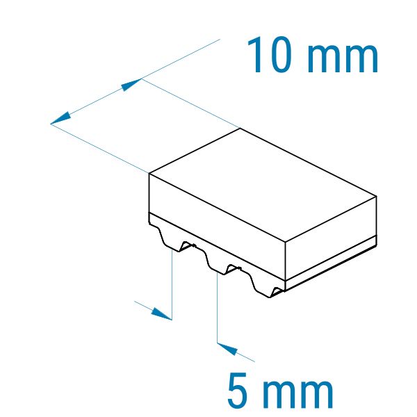 Profil: T5 | Breite: 10 mm | Mitnahme: hoch | Oberfläche: Struktur, grob | Abriebfestigkeit: mittel | für Holz, Kunststoffkästen, Kartonagen