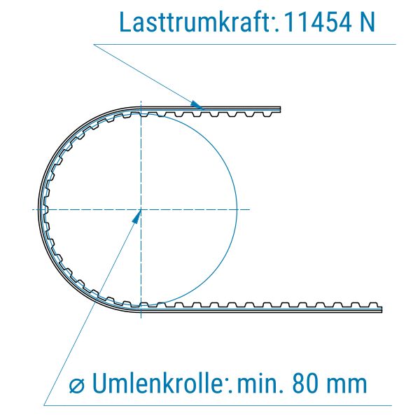 Zahnriemen 150-T10-offen-Stahl mit PVC blau (petrol) 1 mm