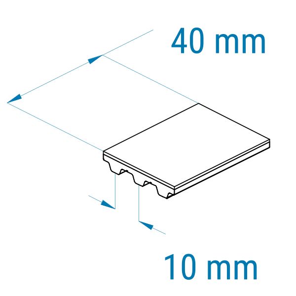 Profil: T10 | Breite: 40 mm | Mitnahme: hoch | Oberfläche: glatt | Abriebfestigkeit: mittel-niedrig | für Folienverpackungen, Transport empfindlicher Teile