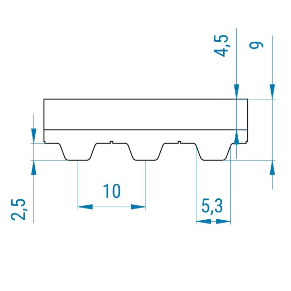 Zahnriemen 10-T10-offen-PAZ-Kevlar mit PVC Supergrip petrol
