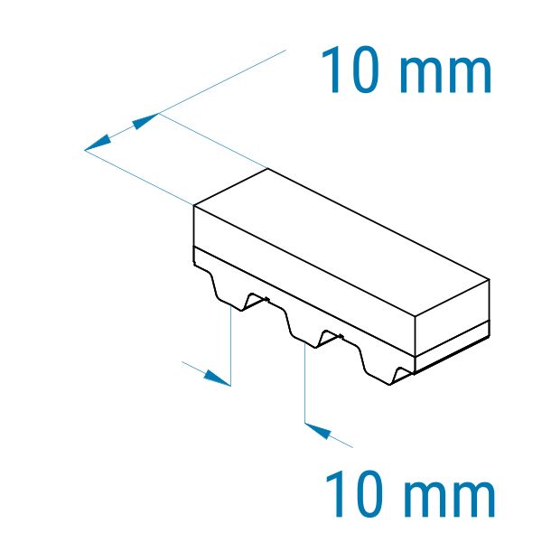 Profil: T10 | Breite: 10 mm | Mitnahme: sehr hoch | Oberfläche: Struktur, grob | Abriebfestigkeit: mittel-niedrig | für Holz, Kunststoffkästen, Kartonagen