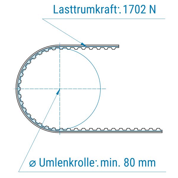 Zahnriemen 40-T10-offen-Kevlar mit PVC Grip petrol
