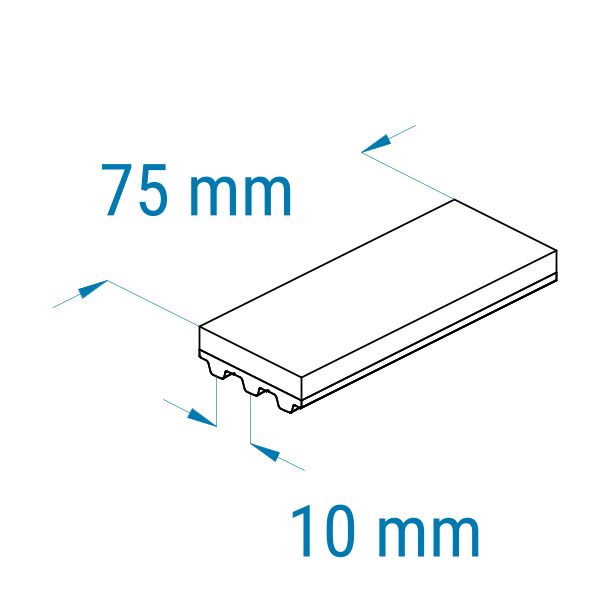 Profil: T10 | Breite: 75 mm | Mitnahme: sehr hoch | Oberfläche: Struktur, grob | Abriebfestigkeit: mittel | für Holz, Steine, starke Verschmutzung