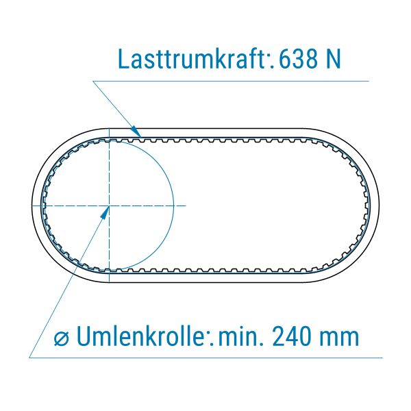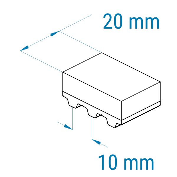 Zahnriemen 20-T10-V-Kevlar mit Celloflex 8 mm (doubliert 4+4)