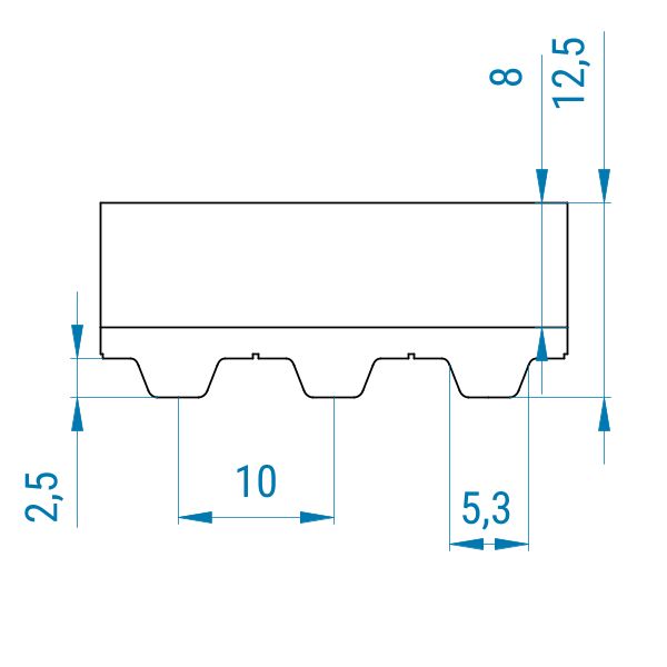 Zahnriemen 10-T10-offen-Stahl mit Linatex 8 mm
