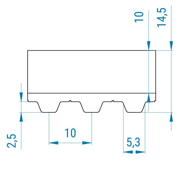 Profil: T10 | Breite: 10 mm | Mitnahme: hoch | Oberfläche: glatt | Abriebfestigkeit: mittel-hoch | für empfindliche Teile, Verpackungen, Kartonagen, Führen, Anpressen