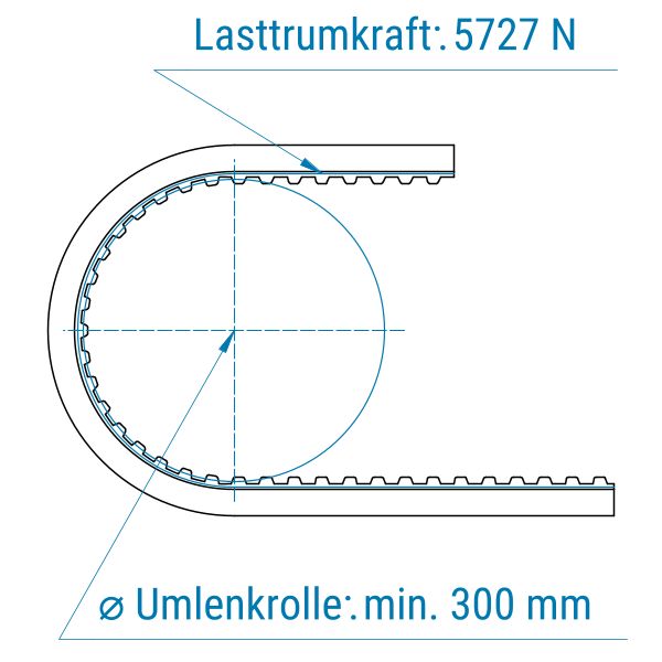 Zahnriemen 75-T10-offen-Stahl mit Porol NE/Gewebe blau 10 mm