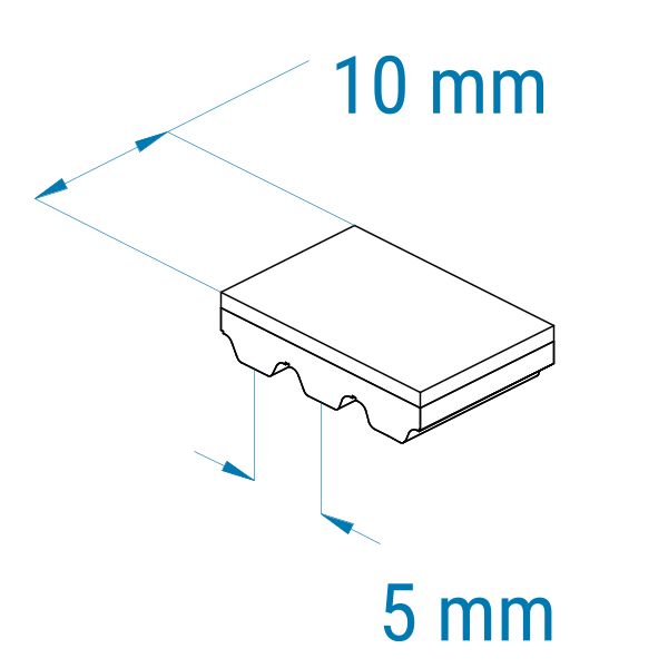 Profil: AT5 | Breite: 10 mm | Mitnahme: hoch | Oberfläche: glatt | Abriebfestigkeit: mittel-niedrig | für Folienverpackungen, Transport empfindlicher Teile