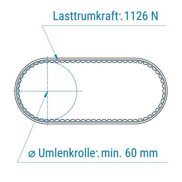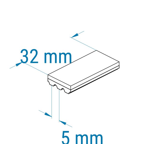 Zahnriemen 32-AT5-V-Stahl mit PVC blau (petrol) 2 mm