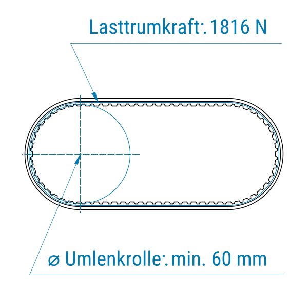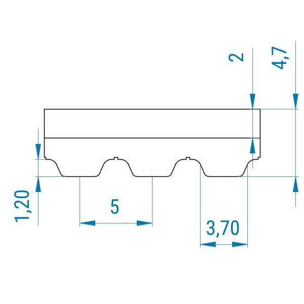 Zahnriemen 50-AT5-V-Kevlar mit PVC blau (petrol) 2 mm