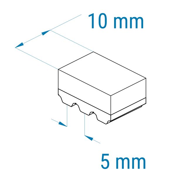 Profil: AT5 | Breite: 10 mm | Mitnahme: sehr hoch | Oberfläche: Struktur, grob | Abriebfestigkeit: mittel-niedrig | für Holz, Kunststoffkästen, Kartonagen
