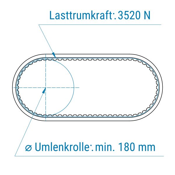 Zahnriemen 100-AT5-V-PAZ-Stahl mit PVC Supergrip petrol