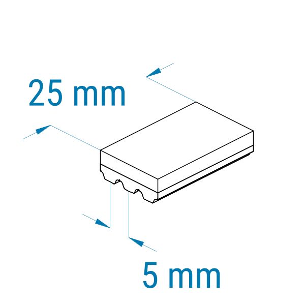 Profil: AT5 | Breite: 25 mm | Mitnahme: hoch | Oberfläche: Struktur, grob | Abriebfestigkeit: hoch | für Lebensmittel, Fleisch-, Wurstverarbeitung, Gefriergut | für Lebensmittel geeignet nach FDA oder EU10/2011