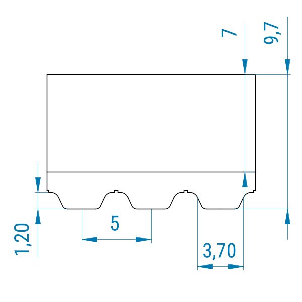 Zahnriemen 16-AT5-V-PAZ-Stahl mit Celloflex 7 mm (doubliert 3+4)