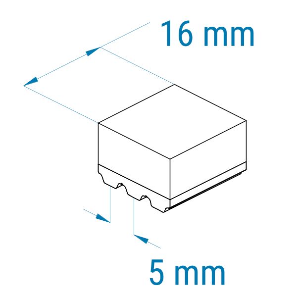 Profil: AT5 | Breite: 16 mm | Mitnahme: gering | Oberfläche: rau | Abriebfestigkeit: mittel | für Kartonagen, Stau, Leiterproduktion, Textil